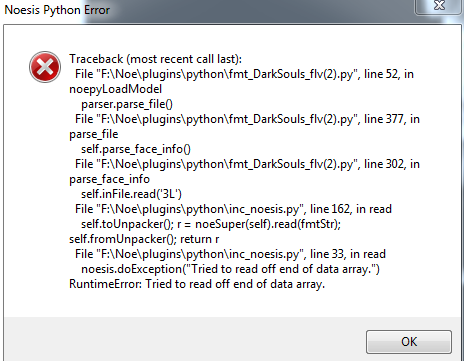 Hey guys! I'm really new to the scene, but I got Binder Tool to work! But I'm getting errors opening a lot of the FLVER files in Noesis, any ideas? I have the FLVER plugin and half the files DO work but most don't.
